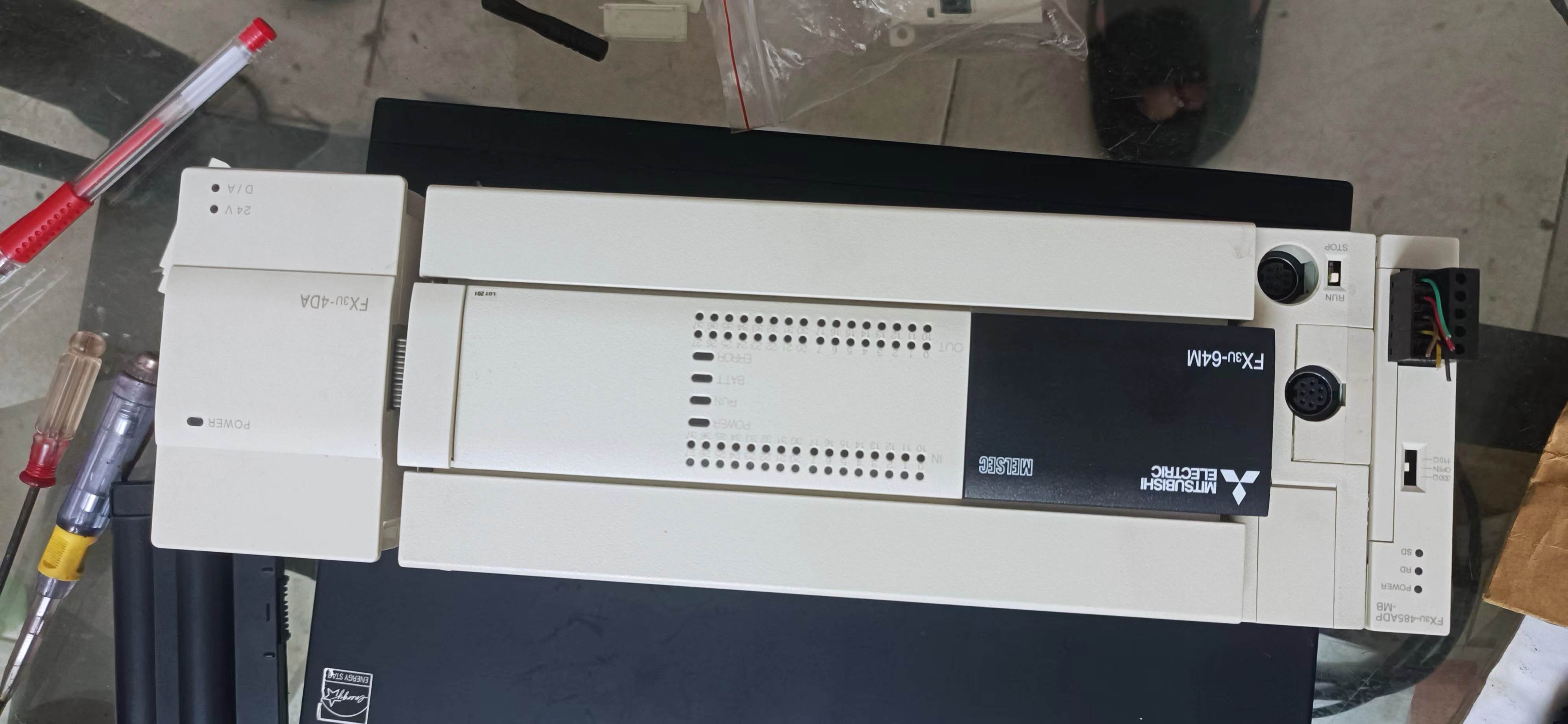 測試專用的一套,主機fx3u-64mr  通訊模塊 485mb  模擬輸出模塊4da !成色很好!!1200全套!!!