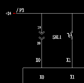 好象不太對啊1PLC 的輸入只是一個開關量,但你的圖接入的是DC24V的電源,樓上說的很清楚了,共陽極的話,19接COM端,20接X0才對啊。