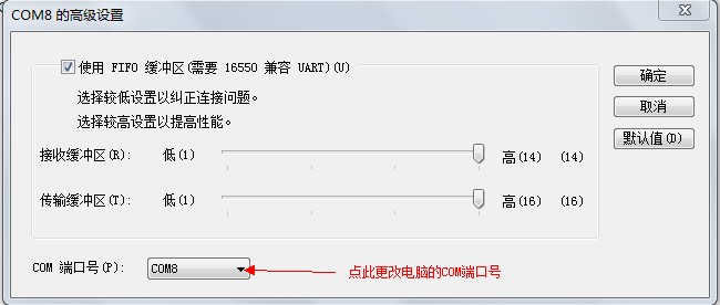 c、在高級(jí)選項(xiàng)中,更改USB轉(zhuǎn)232的COM端口號(hào) 圖3