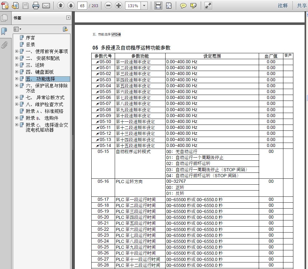 頻率指令選擇面板上的數字操作器控制,運轉指令選擇外部端子控制 參數2.00=00 參數2.01=01 參數2.02=00 快速40用面板來設定,慢速10用多段速5.00指定 其他參數自己看著辦 |