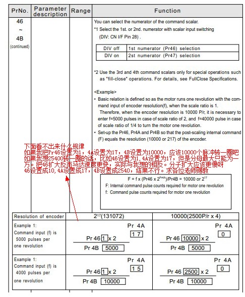 你可以試試將46=1,4A=16,4B=10000試試看,表格的第二個和文字描述的不一樣,文字描述的是40000,表格是4000,所以估計誤導你了。應該是40000,這樣比例為1/4,你的分子越大轉速越快的。 祝你好運, |
