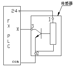三菱 FX-PLC 的輸入端子既可以接受電流輸入也可接受電流輸出的連接方式,(即 FX-PLC 的輸入端子既可作為漏型輸入也可作為源型輸入連接)關鍵要掌握接線方式。具體接線方式按下述: NPN 型接近開關接成漏型輸入方式,只需將接近開關的開關輸出端子( + )接入 PLC 的輸入端子,接近開關的另一端子(—)接 PLC 的 COM 端。 PNP 型接近開關接成源型輸入,則應把 PLC 的 24V+ 端子接外部電源的負極,外部電源的正極接接近開關的( + )端子,接近開關的另一端(—)則接 PLC 的輸入端子。