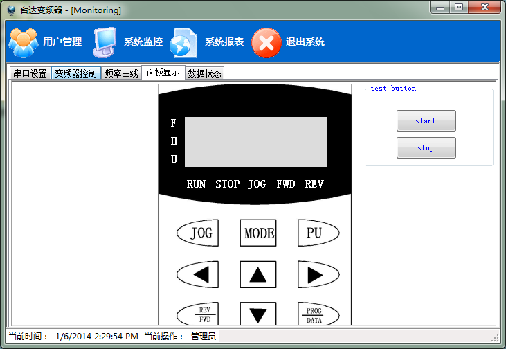 自己在.NET下用C#開發的上位機,做的是和臺達B系類變頻器的通訊,主要是控制起停、修改頻率、模擬變頻器控制面板、報表、登錄等等 用的是SQL數據庫,寫這種軟件關鍵做的是數據處理以及深入理解計算機通信原理!這個是自己寫著完的,已經調試好了,效果還是不錯的,就是報表打印這一塊沒有做,也就是一個reportview控件的使用!