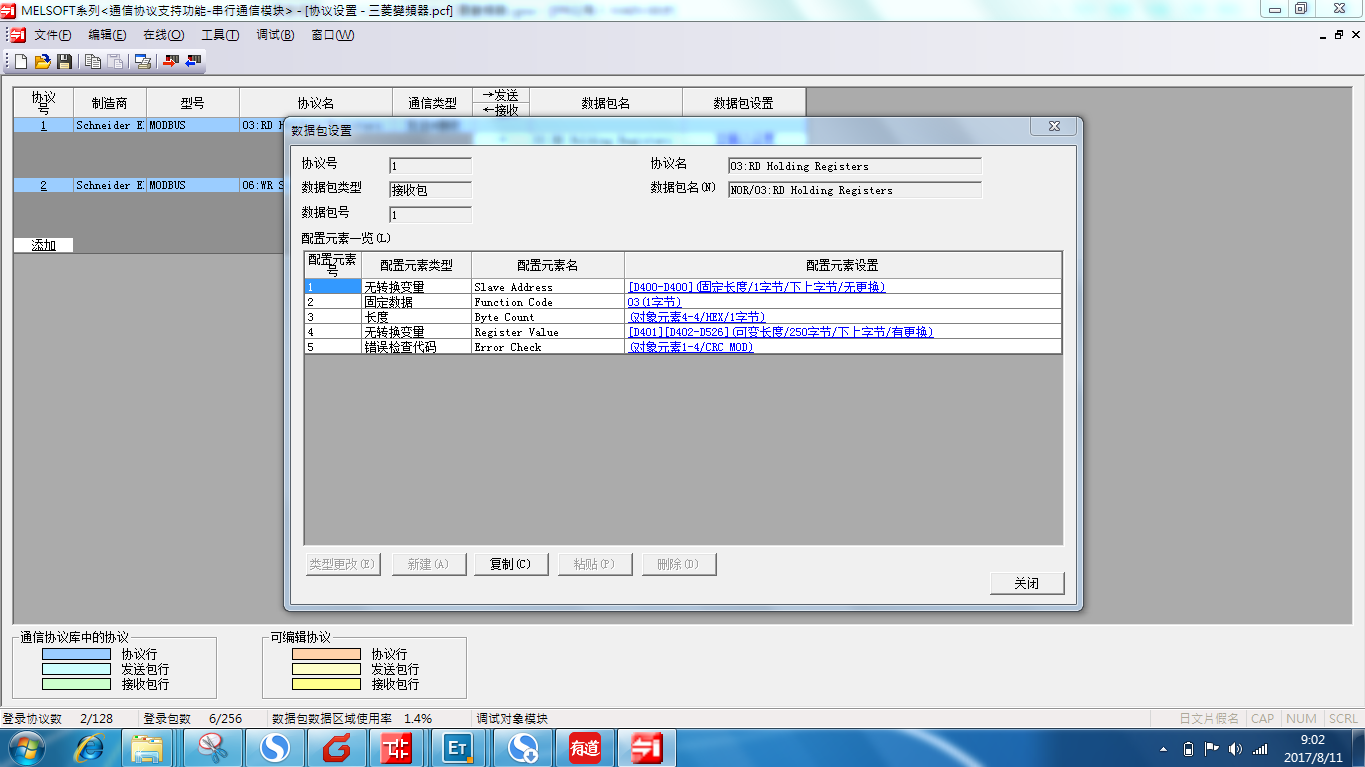 總的來說,這個幀的結構就是 地址+功能+長度+寄存器+CRC,這個一下也解釋不清,你可以看看我之前的帖子,或者看看說明書也行,弄懂了就那么回事,其實就是設備直接說的話