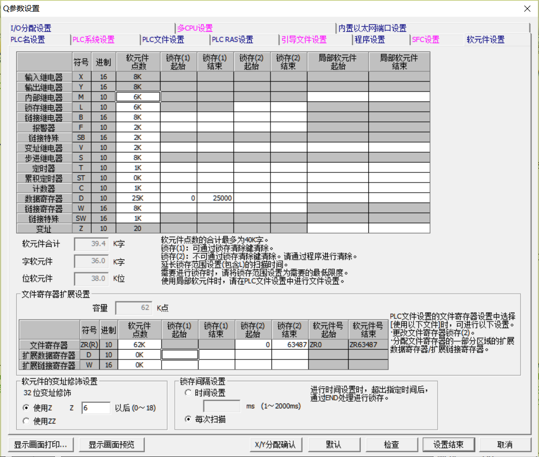 我現(xiàn)在用的三菱q系列PLC,軟元件合計38.8的時候沒啥問題,可是我把軟元件設(shè)置為如附件那樣的39.4的時候,PLC就會出現(xiàn)莫名其妙的錯誤,如:程序卡著不動,以前能運(yùn)行的程序現(xiàn)在全部混亂了,數(shù)據(jù)還出現(xiàn)了亂碼,復(fù)位指令沒導(dǎo)通但是置位信號卻執(zhí)行不了。