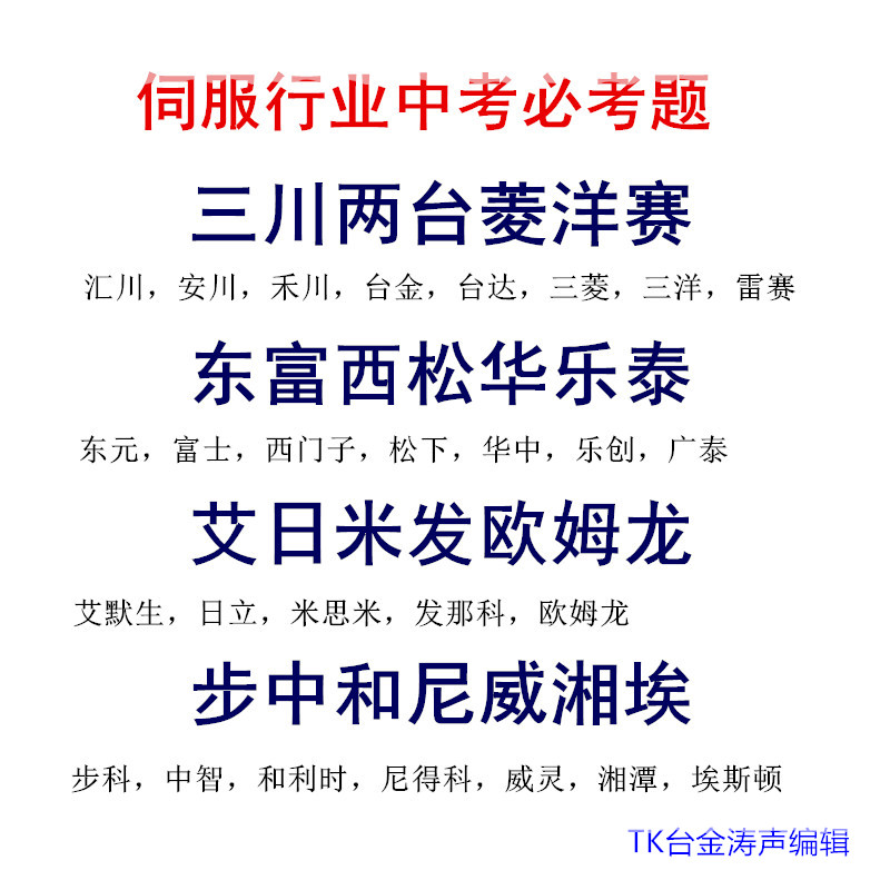 三川兩臺菱洋賽——(匯川、安川、禾川)(臺達、臺金)三菱、三洋、雷賽