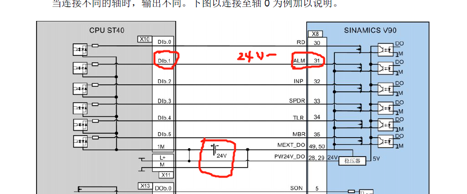 手冊上,V90 DO輸出和 200smart接線是用的NPN,PLC公共端接的24V+,但是結合以前的設備只能用PNP接法,也就是200smart公共端接24V-, 但是V90 DO輸出的是24V-,得接200smart PLC NPN接法,所以我自己用中間繼電器轉換一下,讓V90 DO 輸出24V+,這樣解決的