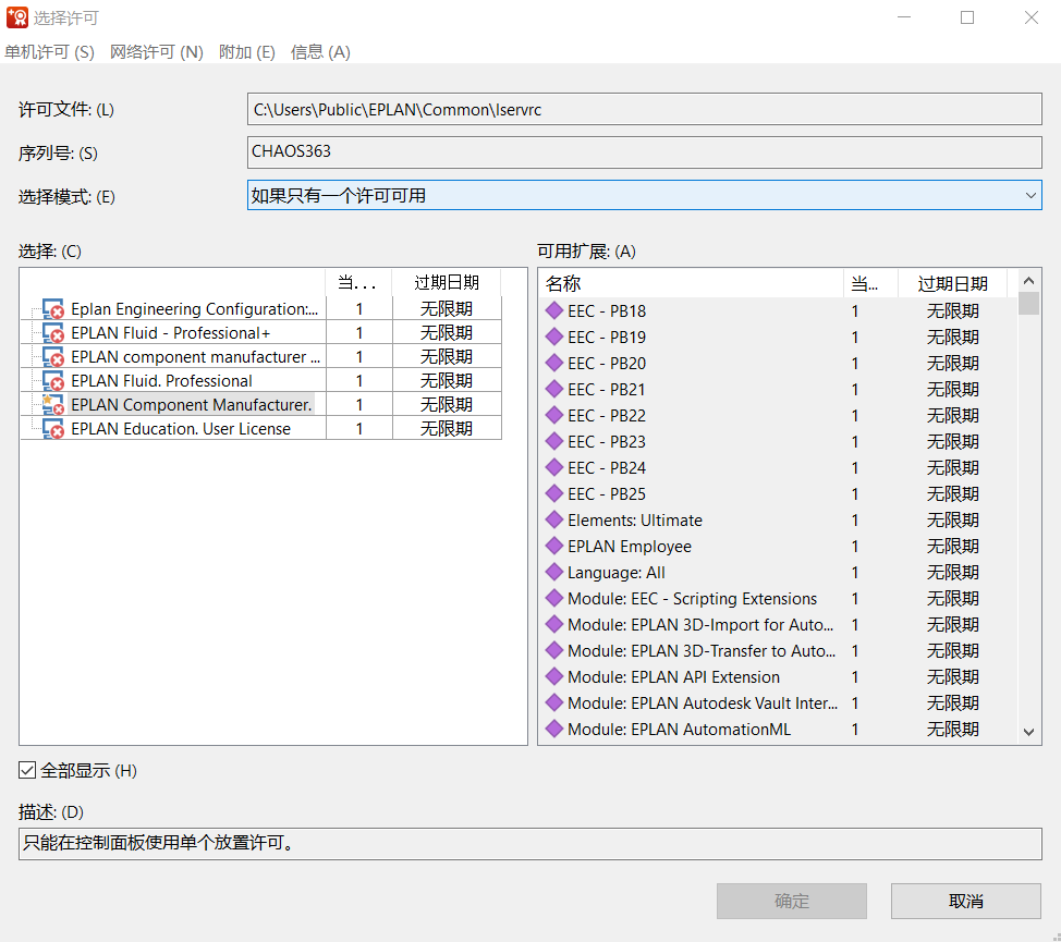 安裝完成激活后可以打開軟件,重啟電腦就出現(xiàn) 選擇許可 窗口,確定按鈕灰色的重新再次激活也是這樣。