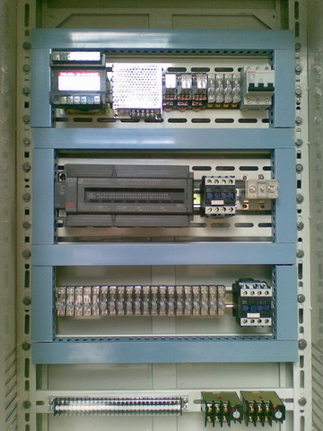 個人覺得把PLC和開關電源放在最上面會好看點。還有你的線槽不要分成這么多段,這樣看起來會整齊一點 |