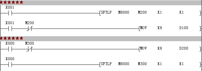 如下圖,關(guān)于掃描時間的問題: X001接通后,D100是不是不可能會等于K8,也就是后面的程序?qū)⒉粫䦂?zhí)行? X000接通后,D200就一定會等于K8,后面的程序會執(zhí)行? |