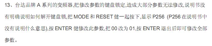 大家好,我有一臺臺達的變頻器型號是VDF-B-A  的鍵盤鎖了,什么參數都改不了