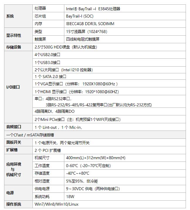 PPC-15A1 是一款配置 15"液晶屏及觸摸屏的無(wú)風(fēng)扇低功耗工業(yè)平板電腦,采用Intel®AtomE3845(2M Cache,1.91 GHZ)CPU,內(nèi)置非 ECC 4GB DDR3L SODIMM 內(nèi)存條,具有多種接口。整體平臺(tái)具有更強(qiáng)的圖形處理能力,更快的處理速度,全尺寸觸摸屏操作。本產(chǎn)品可選配置帶有兩個(gè)擴(kuò)展插槽(PCI 或 PCIe),可獨(dú)立安裝與拆卸相應(yīng)的板卡。