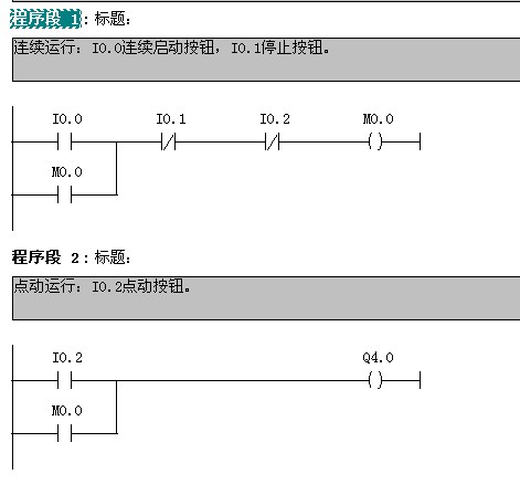 連續運行啟動I0.0、停止I0.1,點動I0.2。
