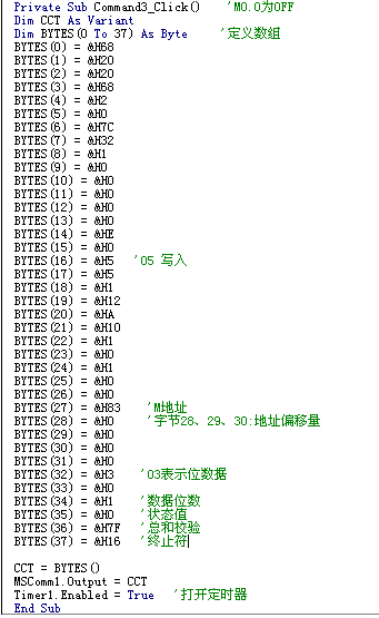 VB中用的控件有:兩個按鈕、兩個標簽Label、一個定時器timer、一個通訊控件MSComm1.