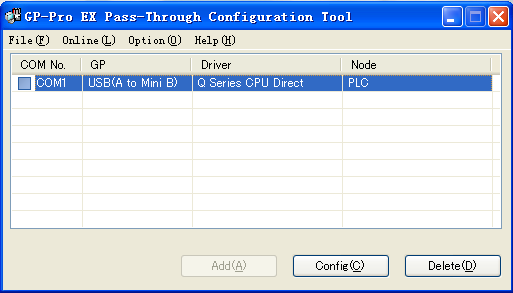 我用過GC4401的,與三菱Q02U CPU可以做穿透通信,就是速度有些慢,安裝Pro-face的Pass-Through后可以做穿透通信,安裝光盤里面有這個小工具軟件,就是相當于生成一個虛擬串口。