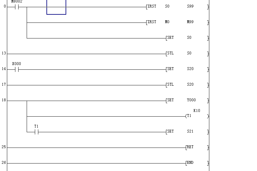 老師們好,我用的是GX-Dev8.86軟件,第14步,第19步的觸點(diǎn)S0,S20去掉后,轉(zhuǎn)換時(shí)還顯示錯(cuò)誤,線圈不能直接接到左母線上。