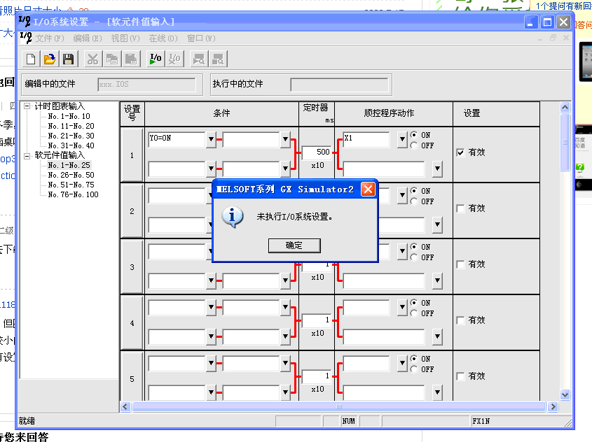 在用GX WORKS2做仿真時,點擊執行I/O設置后出現如下畫面: