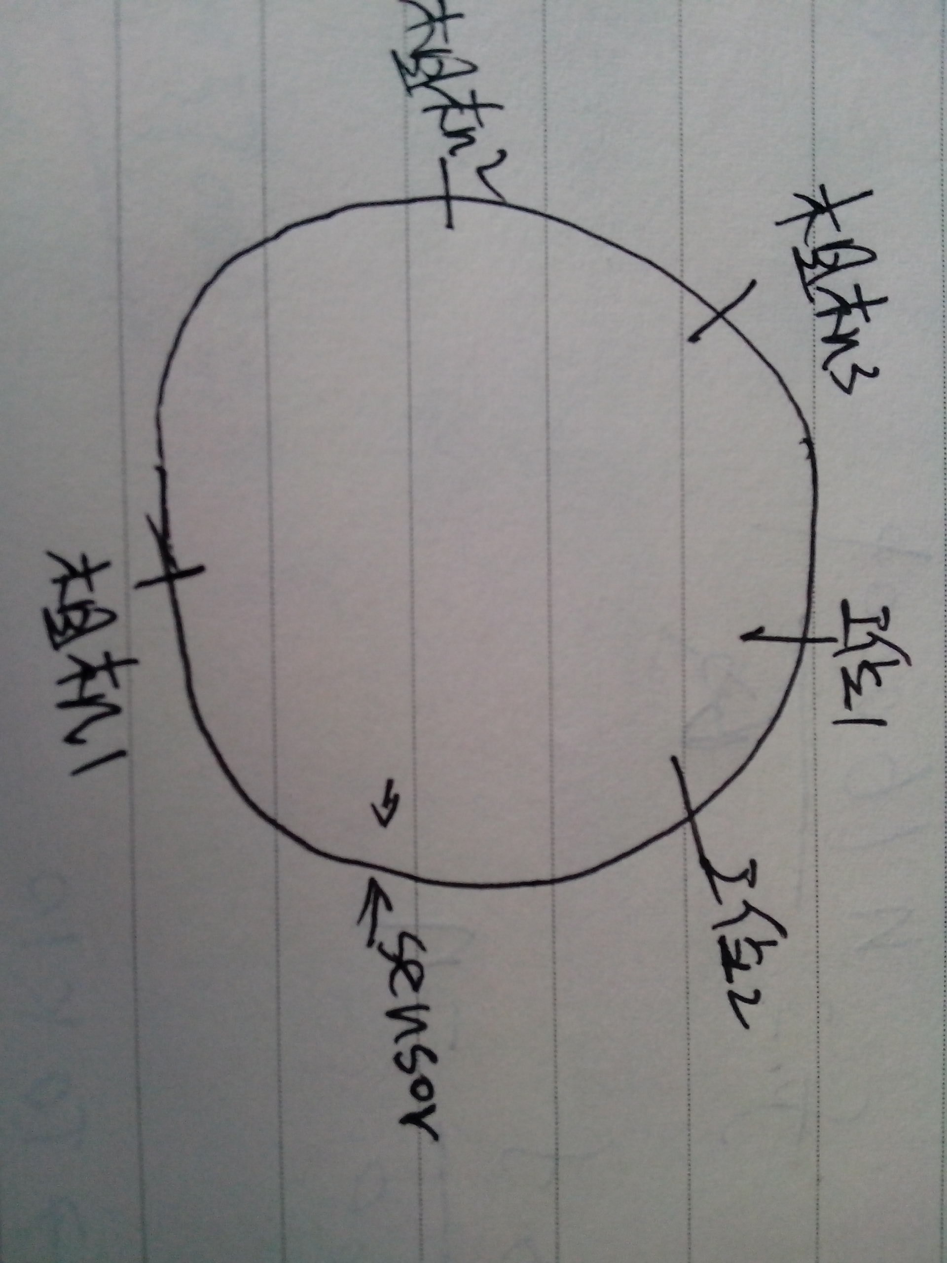 如圖在一個轉盤上有一個sensor5個工位,當sensor位置有物品進入時,如何依次觸發5個工位,讓五個工位進行動作?請各路英雄們指導一下 |