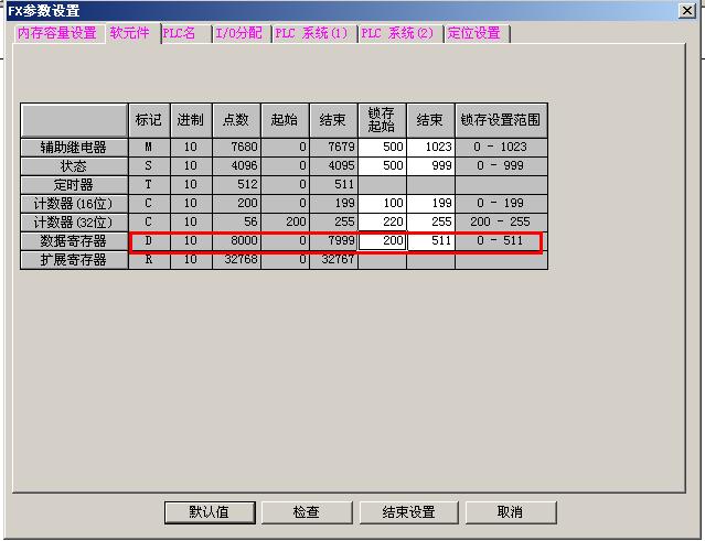 FX系列PLC的數(shù)據(jù)寄存器斷電保持的號(hào)是固定的你可在程序PLC參數(shù)中看見和設(shè)置