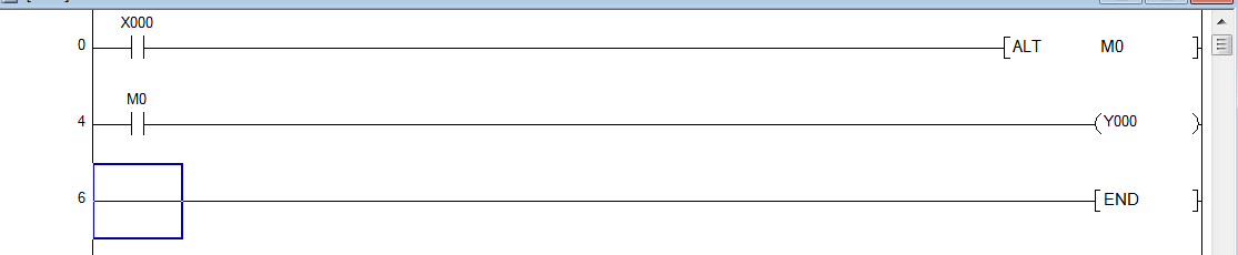 雖然知道脈沖型指令是一個掃描周期執行一次命令,但是如圖,在第三步的程序里有兩個m0中間繼電器,如果x0動作,在第三步里的第一個m0動作,第二個m0反不動作。我這樣理解正確嗎?ps:圖里的程序是x0控制y0輸出和停止