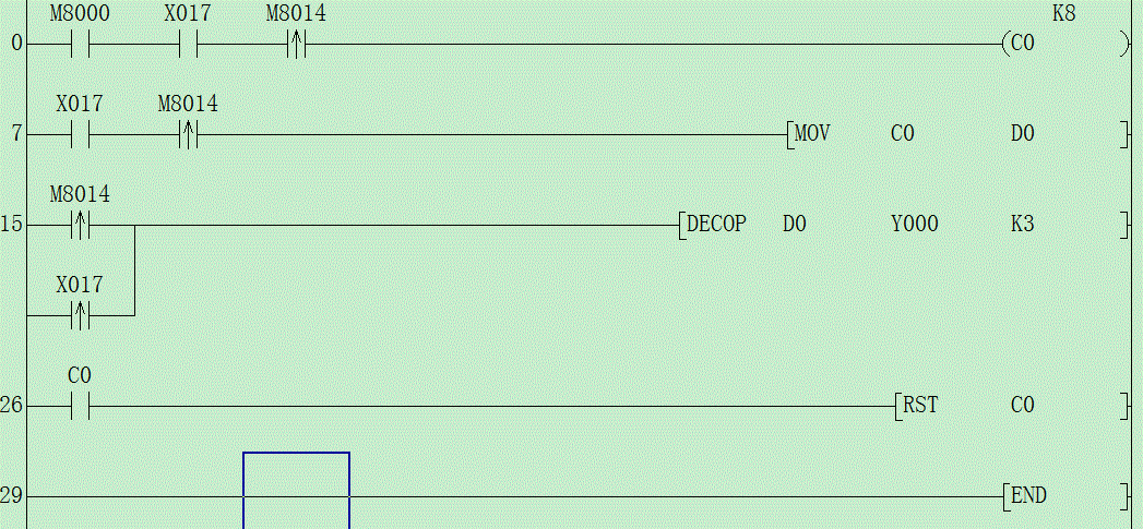 引用樓主云溪hzh1于2018-08-08 10:01發表的 用三菱plc做8盞燈循環梯形圖 每盞燈間隔60秒 簡單說就是跑馬燈 :