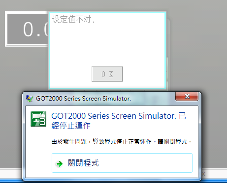 我只是寫個很簡單的程式測試一下仿真,數值輸入在範圍內都沒問題,只要數值超出上限或下限仿真軟體就死當,還要重啟電腦才能再使用,我電腦是繁體安裝簡體板才會出問題?