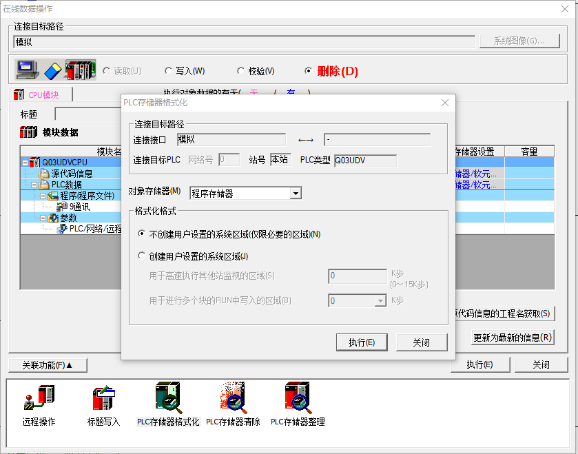有沒(méi)有大佬知道三菱PLC存儲(chǔ)格式化,刪除的是什么東西。會(huì)不會(huì)把數(shù)據(jù)寄存器(D)的數(shù)據(jù)刪除?