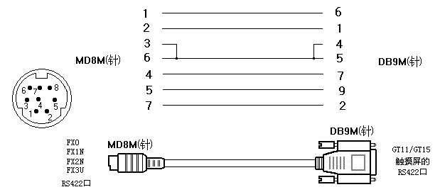 求三菱GT1050觸摸屏與三菱FX系列PLC通訊電纜接線圖。。謝謝大家。。支持一下新人。。