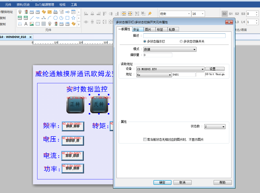 本人新手,威綸通TK6071IP觸摸屏MODBUS歐姆龍3G3MZ變頻器,其他功能,比如頻率的設置和顯示,電壓,電流多可以顯示了。唯獨正反停狀態,指示燈做不來,數據不會算。求大蝦們。正反停需要通過變頻器來讀取,然后顯示,該怎么做。