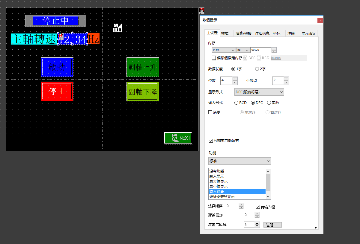 富士的觸摸屏S808 歐姆龍CP1E-N20的PLC 士林的變頻器 硬件連接:觸摸屏COM1連接變頻器(RS485) 觸摸屏COM2連接PLC 只需在主軸轉速后寫入HZ數 按下啟動 就可運行至設定HZ 我看了下觸摸屏與PLC程序 只要將HZ數MOV到D94 就完成了 但是我在觸摸屏上找不到D94的設置 在PLC上也就是將HZ數MOV到D94 達到運轉HZ數效果 請問這是如何完成的 有朋友知道嗎? 本人剛學不久 還有有知道的朋友告之 |