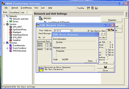 我用Finsgetway 軟件測試工控機與PLC網絡通訊,但報了一個警:no unit(沒單元)。謝謝