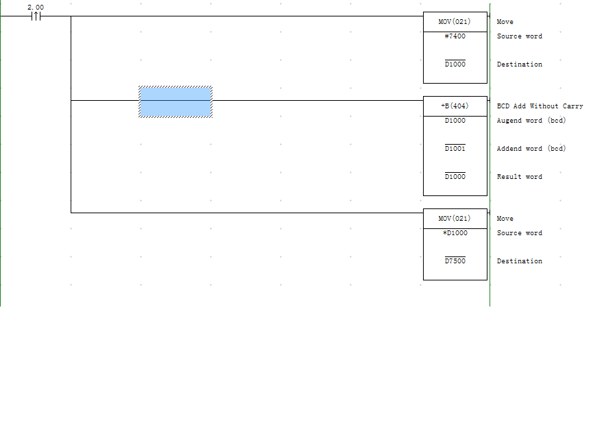 這個是把D7400 D7401 D7402三個連續的通道的數據傳送到D7500 D7501 D7502的吧,我需要的是:比如說V0是2的話,這個指令就把D7402的數據傳送到D7500,前邊D7400V0執行的實際是D7402 也就是MOV D7400V0 D7500=MOV D7402 D7500的