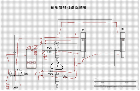 我把你的圖進行了編號,來說明我對圖紙的理解。壓縮空氣通過YV1進入到氣缸,如果(一)氣缸回路是1→左右氣缸→2(YV2)→油罐→YV1→5;氣缸速度是快速。(二)氣缸回路是1→左右氣缸→3(過溢流閥)→油罐→YV1→5;氣缸速度是中速。(三)氣缸回路是1→左右氣缸→4(YV3和溢流閥)→油罐→YV1→5;氣缸速度是慢速。圖中的黑線圈是什么作用,請指教 |