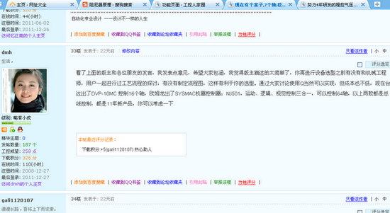這是我給另一朋友的建議,他還給我評分,我很欣慰,希望我的建議能對他有所幫助。我在工作中也會碰到困難,我也經常上論壇來請教,大家奮斗在工控的各個領域,各有所長,發揮大家的力量共同進步對于大家不是更好嗎 |