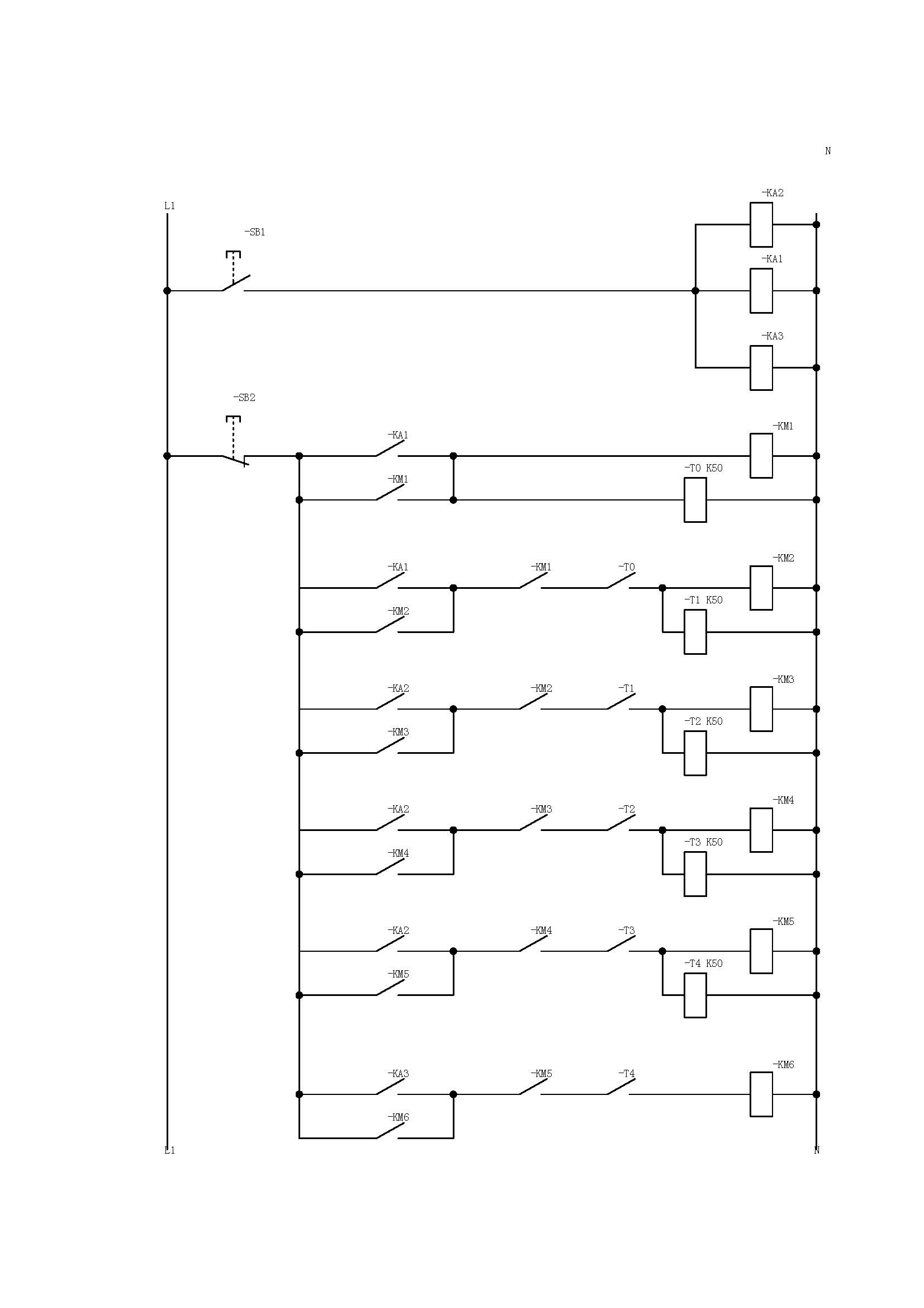 用第一中間繼電器的常開(kāi)點(diǎn)串在第二電機(jī)的控制線路上,控制第二個(gè)電機(jī)啟動(dòng),第三個(gè)用第二個(gè)依次類推.