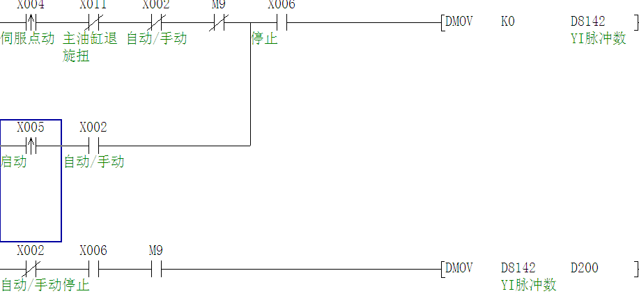 真誠感謝!這是以前的一個工程師寫的程序,原句是ldp x0 mov k0 d200 ld x0 ddrvi d200 k10000 y1 y2 x0是啟動信號。這能讓伺服電機轉嗎