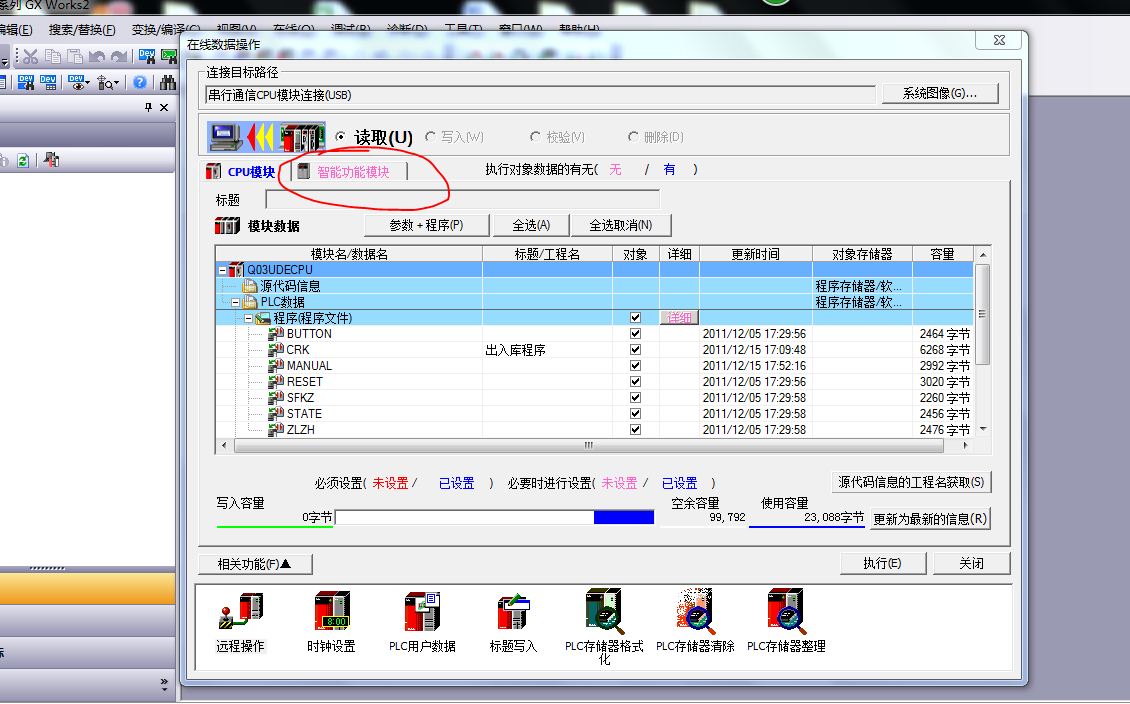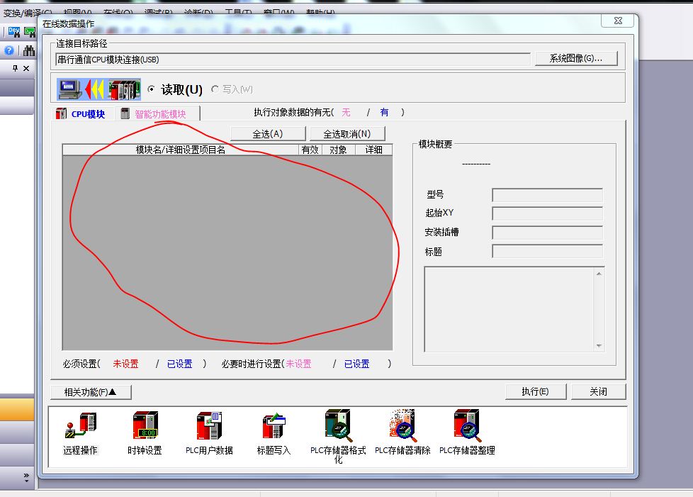 樓主說的是QD75的參數吧,如果是:那么在讀取程序的時候,右邊有個智能功能模塊里面選擇你要讀取的模塊,再執行就可以了