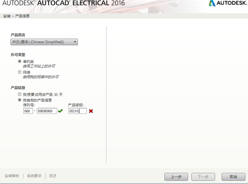auto CAD2016安裝的時候顯示產品密碼錯誤怎么辦啊