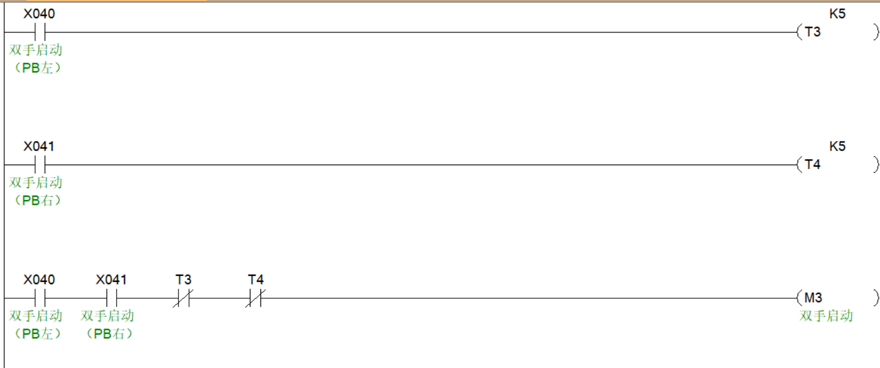 就加個時間繼電器唄,雙手信號接通超過2秒就報警并停機唄,最簡單的處理方式