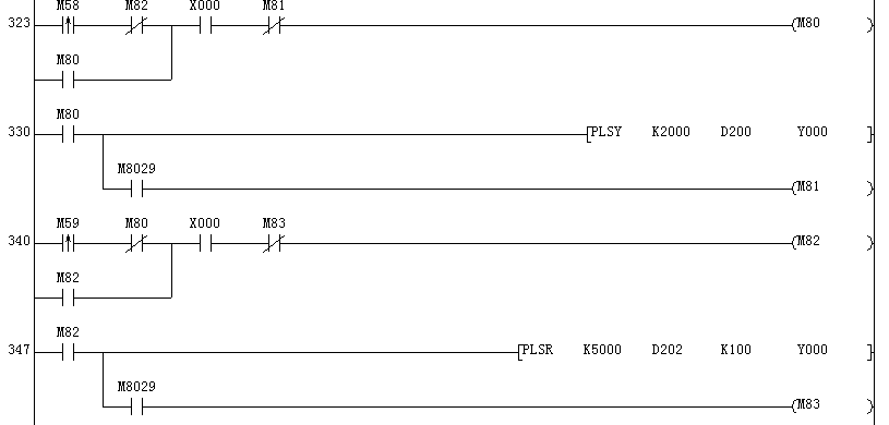 ![]() 求助各位大大,如上圖所示, M58 ON時,M80接通步進電機能驅動 ,但M59 ON時,M82接通就不可以,怎么辦???之前第一條PLSY 我也是用的PLSR,第二條也不行,后來將第一條換成PLSY,第二條仍然也不行,D200與D202都設的5000,結果都是第二條PLSR不能驅動! ![]() |