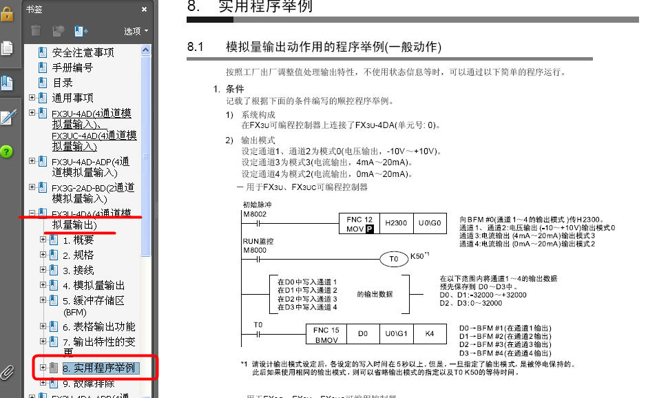 公司里用的是FX3U-16MT(基本單元)和FX3U-4AD-ADP(模擬量輸入模塊)、FX3U-4DA-ADP(模擬量輸出模塊)