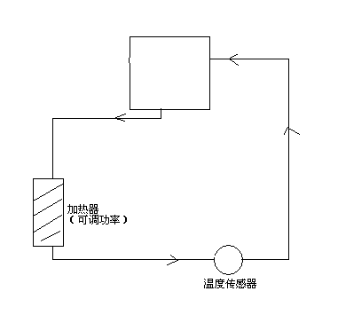 油在如上一個回路中流動(流量是可設(shè)置的,實際應(yīng)用中可能為不同的值),通過一個電加熱器(可調(diào)功率)加熱,流出的管路上有個溫度計,希望這個管路溫度維持在設(shè)定值(30~70攝氏度之間某個設(shè)定值。)
