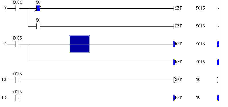 比較D0和D1,這兩個數(shù)應(yīng)該相等。于是到高位時(X4通)置位Y15啟動一臺電機,低位時(X5通),