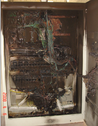 這個問題是我最關(guān)心的,我想問一下,大部份器件均為施奈德牌,據(jù)我的經(jīng)驗(yàn),施奈德的接觸器和斷路器是比較質(zhì)量好的,但從燒毀的痕跡看,在發(fā)生短路時分?jǐn)嗦菲鞑]脫開,才導(dǎo)致從短路點(diǎn)到分線銅排的電線發(fā)熱絕緣損壞而引起分線銅排短路的嚴(yán)重后果,可有總斷路器為什么還沒起到保護(hù)作用呢,就算質(zhì)量有問題,為什么幾級保護(hù)都沒起到作用呢,在這中間難免讓人沒有合理的解釋。