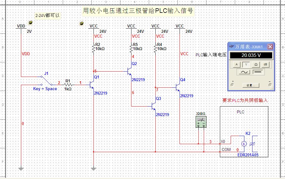 用較小電壓通過三極管給PLC輸入信號 |