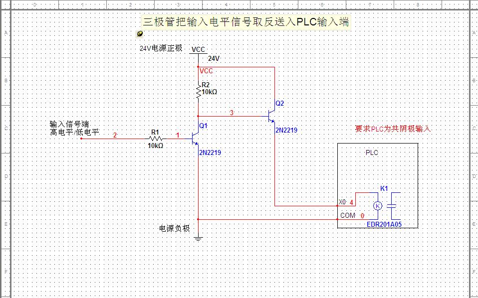 用較小電壓通過三極管和繼電器轉換給PLC輸入信號-PLC為無源輸入型 |