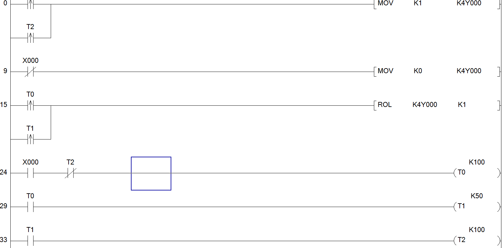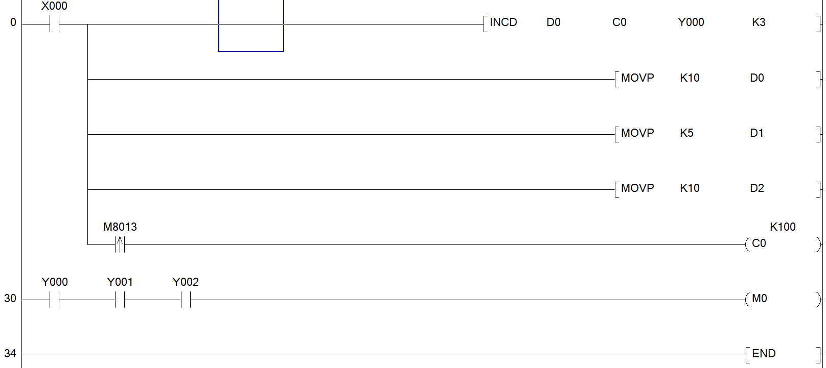 用譯碼指令實現上面動作,XO為動作啟動按鈕。 用凸輪指令實現上面動作,XO為動作啟動按鈕。 ![]() 用移位指令實現上面動作,XO為動作啟動按鈕。 ![]() [ 此帖被g073545在2014-08-30 10:29重新編輯 ] |