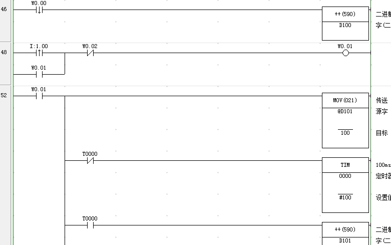 這是8點(diǎn)的,可以改成其他點(diǎn)數(shù)的。歐姆龍的,程序是全按完然后,開始的動(dòng)作。如果是按下就動(dòng)作,要考慮,按的時(shí)間大約10S情況,和2個(gè)以上按,以那個(gè)那個(gè)時(shí)間為為開始等特殊情況。 [ 此帖被huhuil1l1在2016-09-20 11:39重新編輯 ] |