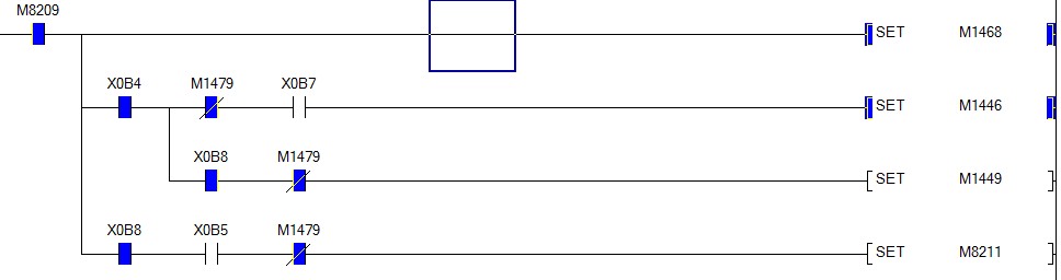 今天調試發現M1449置不了位。用M1600代替后就可以。程序中除了用SM402有批復位,其它地方是沒有復位的。而且M1448是可以置位,而M1449后幾位也置不了位。程序中包括M1449及后幾位,其它地方都是沒有用到的。不明所以。星期六也問不了客服。有碰到過的同行可以指導一下嗎?