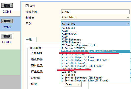 三菱Q2ascpu屬于A系列還是QNA系列,我用臺達(dá)觸摸屏是該選擇哪種?